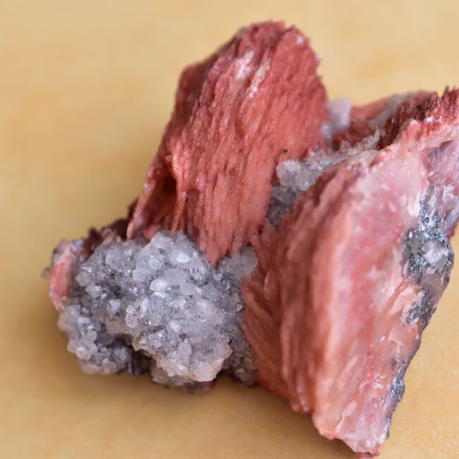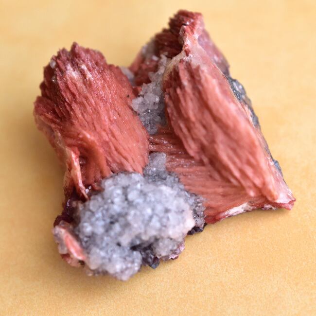 ピンクバライトは砂漠のバラ。ピンク色のデザートローズですが、クォーツとの共生は珍しいのでは。